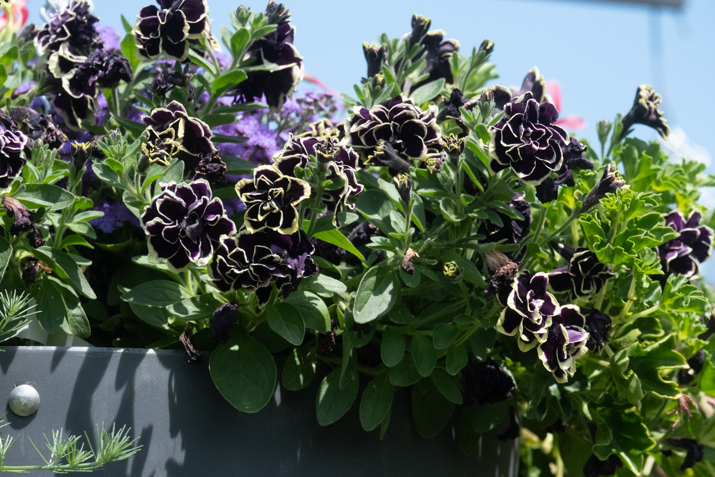 Flowers, intensely colored in near-black purple and yellow.